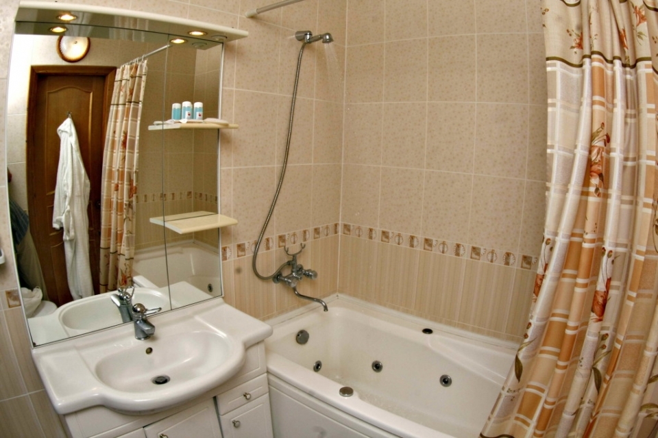 Сан/узел: ванна джакузи, унитаз, раковина, туалетные принадлежности.