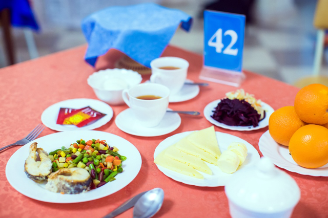 В санатории «Озеро Карачи» организовано два варианта питания: «шведский стол» и «меню-заказ». Приемы пиши проходят в уютной столовой на 600 посадочных мест, находящейся в главном корпусе санатория.