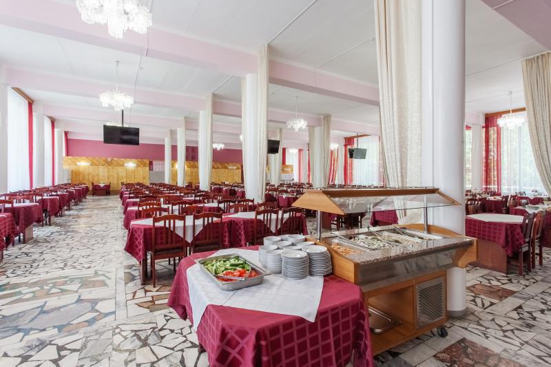 Питание в здравнице отличается сочетанием вкусных и полезных блюд из рыбы, мяса, овощей, запеканок, витаминных салатов, свежих соков, фруктов, кисломолочных продуктов и вкусной выпечки, обеспечивая гостям разнообразный и питательный рацион.