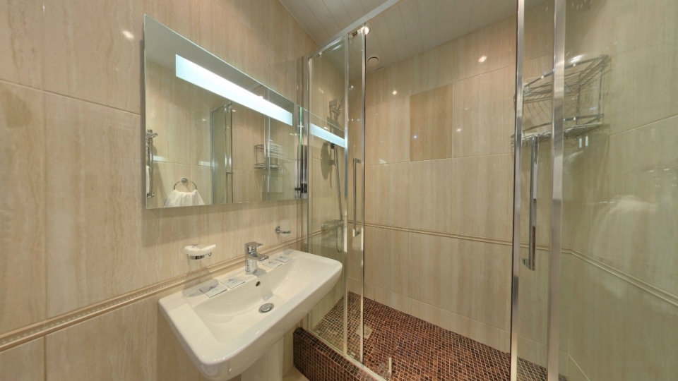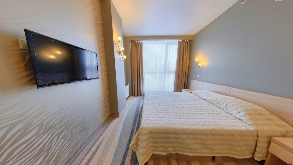 Оснащение номера: две односпальной кровати, кресло-кровать, фригобар, телевизор, сейф, фен, набор посуды: 2 стакана, ваза для фруктов, поднос, wi-fi