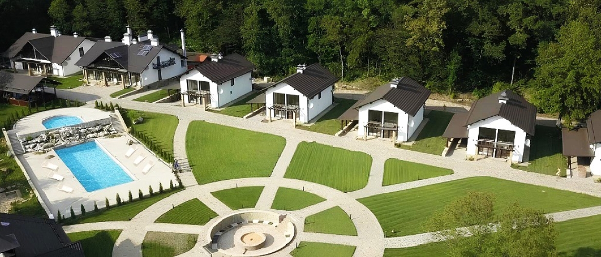 Ресторанно-гостиничный комплекс предлагает размещение гостей в комфортабельных коттеджах. Каждый коттедж имеет свой индивидуальный дизайн и общую зону с каминным залом, создавая необычайно романтическую атмосферу для отдыха. Гости могут выбрать как отдельный номер, так и отдельный коттедж с четырьмя номерами.