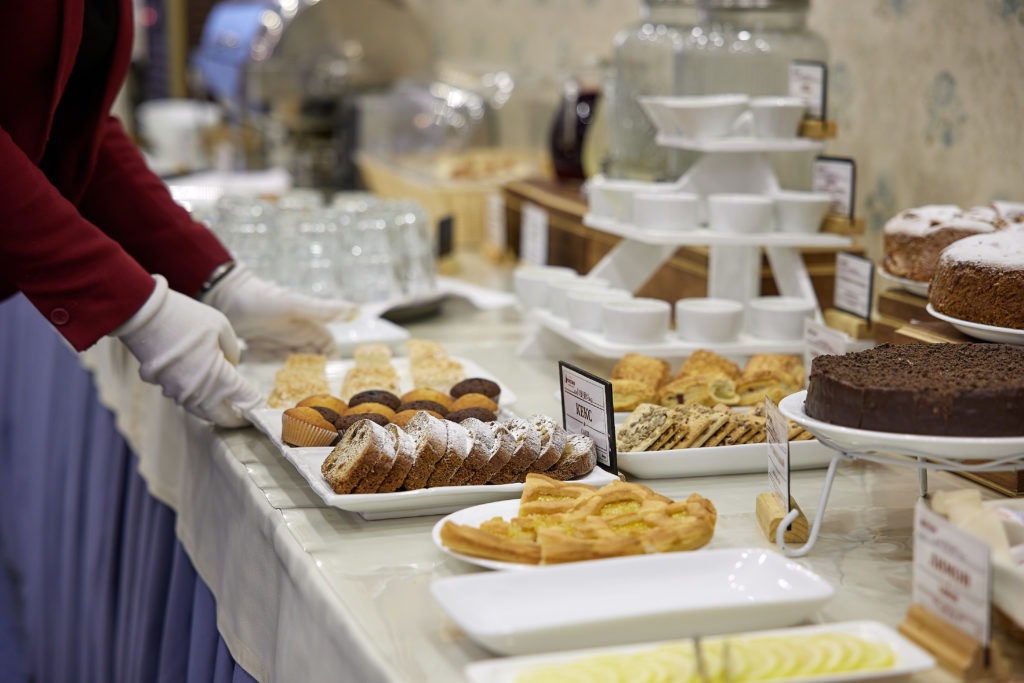 Завтрак проходит в банкетном зале «Империя» с 7:00 до 10:00 по будням и с 8:00 до 11:00 в выходные.