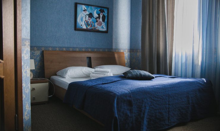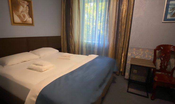 В номере: кровать двуспальная, прикроватные тумбочки, стол, стулья, шкаф, кондиционер, мини-холодильник, сейф, телевизор ЖК