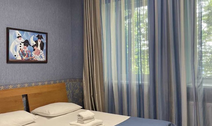 В номере: кровати односпальные /одна двуспальная кровать, прикроватные тумбочки, стол, стулья, шкаф, вентилятор, мини-холодильник, сейф, телевизор ЖК