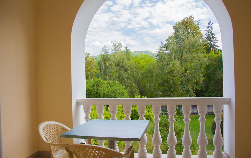 В номере: вешалка, зеркало, кресло, кровати односпальные /одна двуспальная кровать, прикроватные тумбочки, стол, столик журнальный, шкаф, телевизор, телефон, холодильник, чайный набор посуды, электрочайник