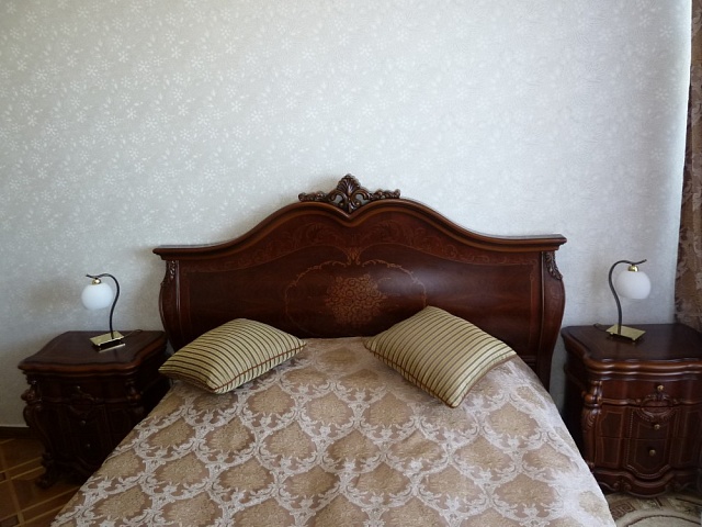 В номере: 2 комнаты, 2 кровати, диван, 2 кресла, тумба прикроватная, тумба TV, журнальный столик, стол туалетный с зеркалом, платяной и встроенный шкафы, обеденный гарнитур, рабочее место, телевизор, кондиционер, холодильник, телефон