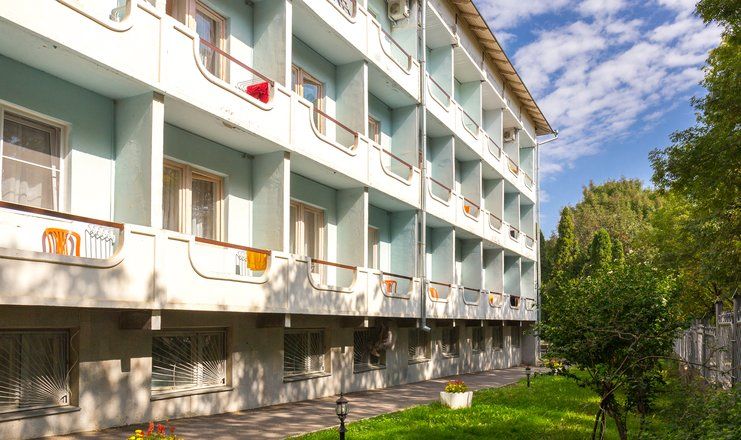 Санаторий состоит из трех корпусов, соединенных теплыми внутренними переходами. На территории здравницы предусмотрена бесплатная охраняемая автостоянка, детская площадка, природный солярий и летняя танцплощадка.