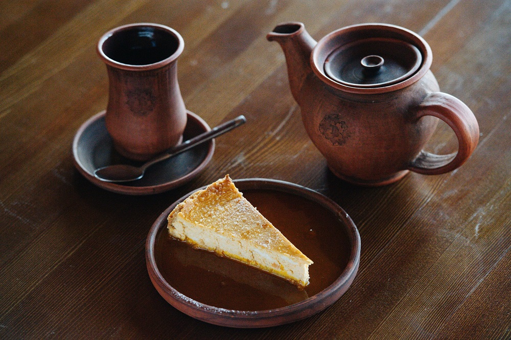 Интерьер ресторана сочетает в себе мебель из массива дерева, украшенные деревянные балками, глиняную посуду и текстиль, создавая благоприятное впечатление о месте. Каждая деталь помещения способствует общему уюту и выгодно смотрится в просторном зале под деревянным куполом.